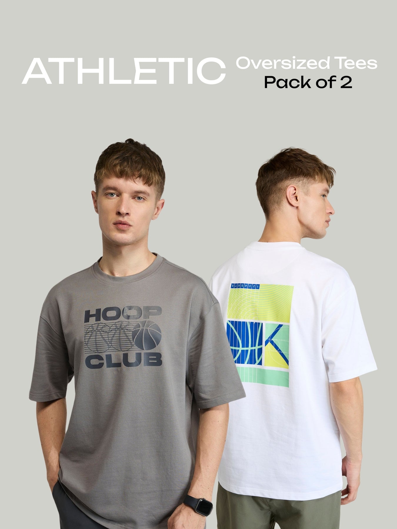 Designed with a loose, oversized fit and drop shoulders, this pack of 2 tees is all about movement and ease. Crafted from 100% cotton, they stay breathable and soft no matter where the day takes you. Each tee carries a bold graphic inspired by basketball and running, two sports that fuel both culture and style. This duo brings versatility to your rotation, giving you an easy upgrade for errands, workouts, or just keeping it effortless.